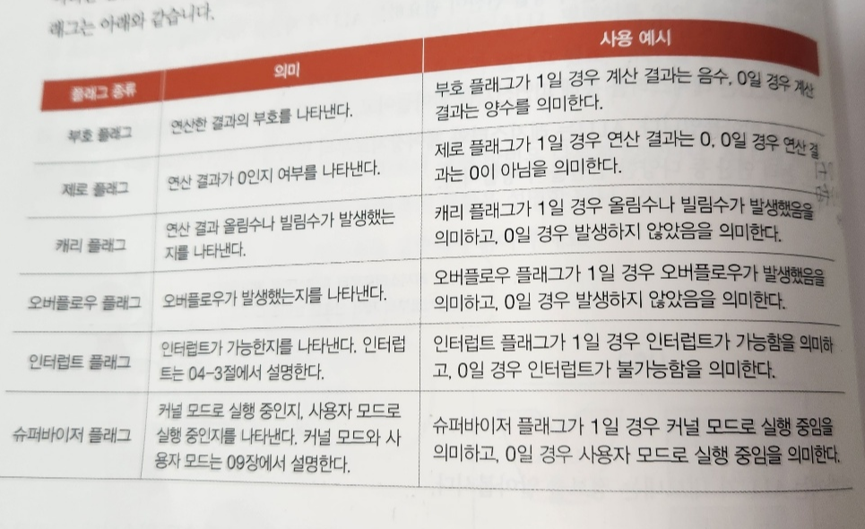 이런 플래그들은 플래그 래지스터라는 래지스터에 저장된다. 이 래지스터를 읽으면 연산 결과에 대한 추가적인 정보를 얻을 수 있다.