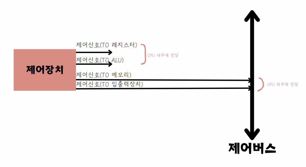 제어장치는 제어 버스를 통해 외부로부터 전달된 제어 신호를 받아들이기도 한다.