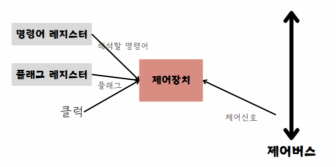 넷째, 제어장치는 제어 버스로 전달된 제어 신호를 받아들인다.